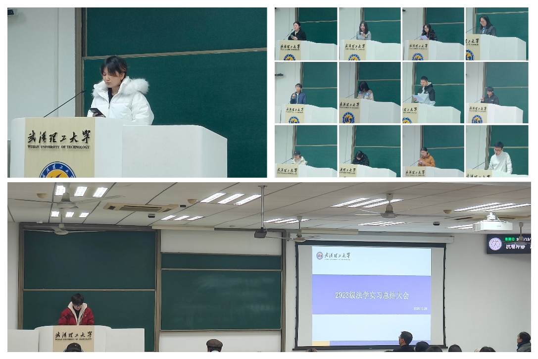 为增强专业认知,总结集中实习成果,促进理论与实务的深度融合,12月28日晚19:00,学院于博学主楼306教室开展2023级法学专业本科生实习总结大会。本次大会由费炜轩同学主持,法社学院2023级辅导员开赛尔、2023级法学专业全体本科生参会。