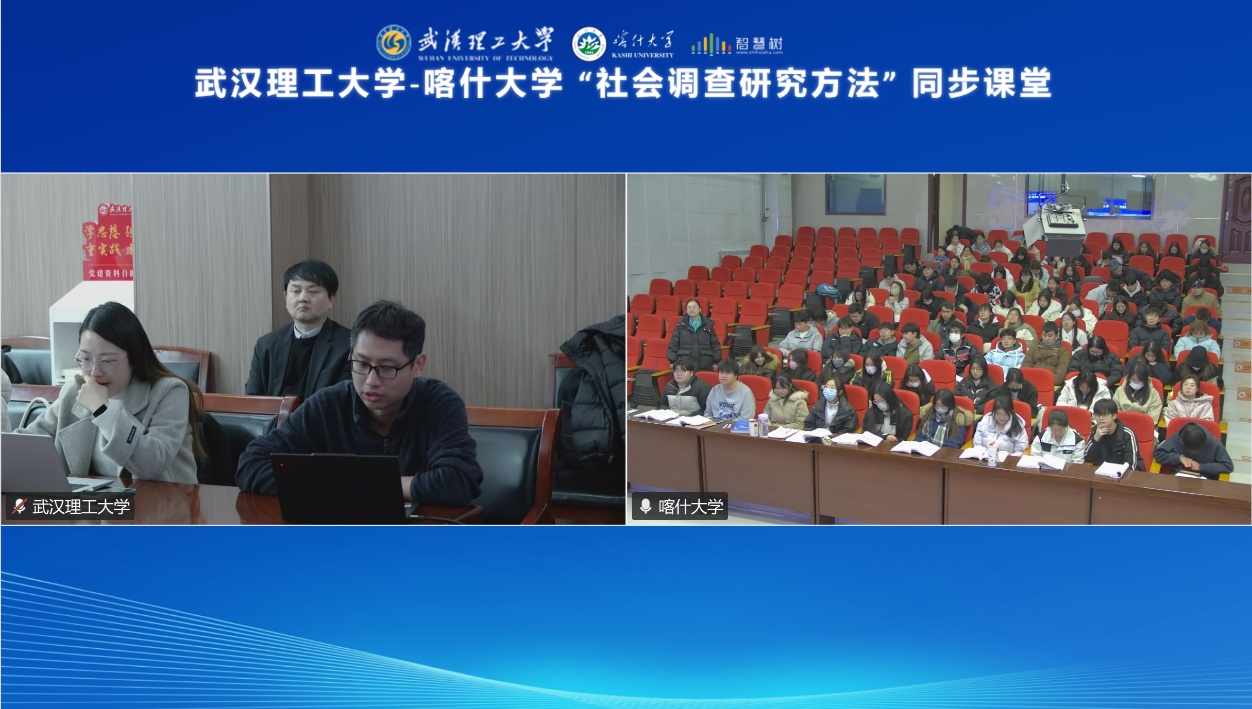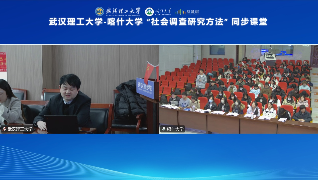 12月29日晚,武汉理工大学法学与人文社会学院与喀什大学政法学院通过智慧树平台开展了一场跨越千里的同步智慧课堂教学活动。两校社会工作专业师生围绕《社会研究方法》课程中问卷设计专题,进行了深入的理论讲解与实践经验分享。本次课程由我院社会学系副教授胡仕勇老师担任主讲。