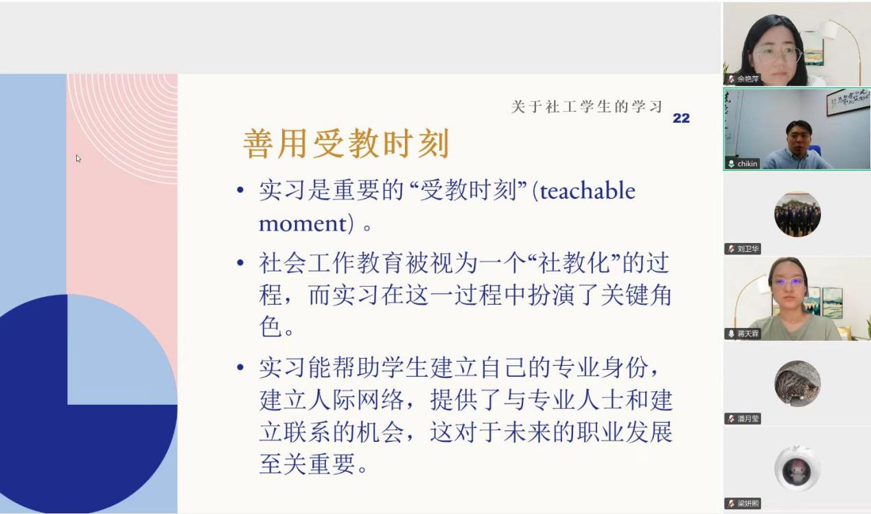 此次讲座为社会工作专业师生提供了实习教育的前沿视角与实践启发,深化了理论教学与实践应用的有机结合。本次学术交流不仅拓宽了师生的国际视野,更为双方后续开展持续合作奠定了良好基础。