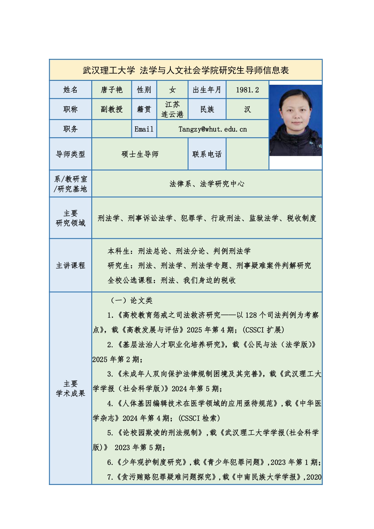 唐子艳 副教授简介