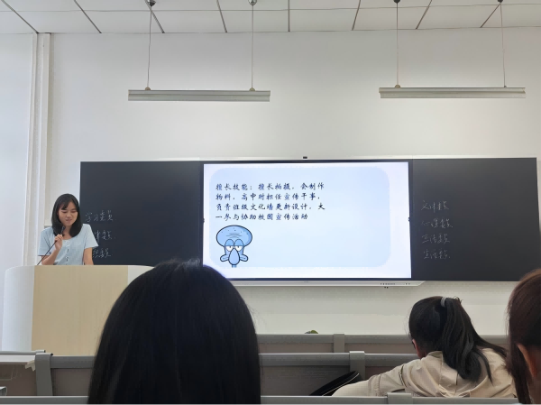 班会还设置了假期生活分享环节。肖荣同学分享了自己暑期期间的社会实践、阅读学习、旅行见闻等丰富经历。该环节有效缓解了新生之间的陌生感,促进了彼此的了解与沟通,初步建立了班级成员之间的情感连接,为后续协作学习与生活奠定了良好基础。