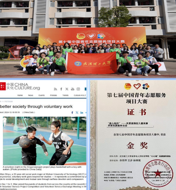 12月7日,由团省委联合省委社会工作部、省民政厅、省残联、荆门市人民政府、荆楚理工学院等单位主办,省志愿者协会、省团校、省青年志愿者行动促进中心、省老龄问题研究中心、共青团荆门市委、荆门市委社会工作部、荆门市民政局、荆门市残联、荆楚理工学院团委等依托“志愿汇”平台承办,劲牌有限公司协办的,以“建功支点 志愿同行”为主题的2025年湖北省青年志愿服务“社区计划”竞赛决赛圆满落幕。经过激烈的角逐,我院“心心语”志愿服务队申报的“星心相印”——关爱孤独症儿童家康共育志愿服务项目脱颖而出,斩获十佳项目殊荣
