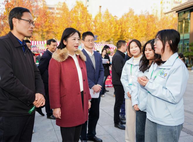 在交流营活动中,团队成员在青年志愿服务公益集市展位,通过项目路演、发放宣传册、打造趣味游戏、陈列手工艺品等形式,向评审专家、参赛社区代表及各市州团委志愿者工作机构负责人介绍项目情况并进行互动。湖北省委社会工作部副部长陈剑、共青团湖北省委副书记徐本禹等领导来到项目展位,详细了解项目实施情况、服务模式和社会价值,并给予充分肯定与高度评价。