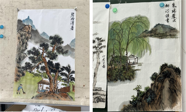 创作体验环节,同学们凝神静气,手持毛笔细心勾勒、慢慢晕染,墨色在宣纸上层层铺展,一幅幅充满个人情感与创意巧思的画作也随之逐渐成形。无论是初学者的稚拙笔触,还是有一定绘画基础同学的熟练挥洒,每一点笔墨、每一抹色彩都承载着大家对传统文化的敬畏与热爱。创作间歇,大家互相观摩作品,交流心得体会,活动室内墨香四溢,氛围温馨又专注。