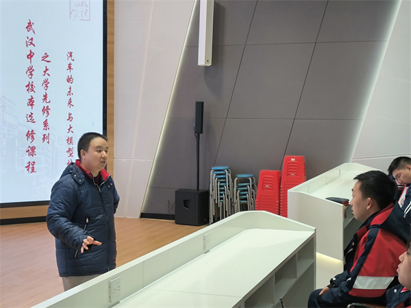 为持续深化学校与重点目标中学的“双高共建”合作,落实本科生源质量提升行动,助力高中学生拓宽学术视野、规划学业方向,12月11日-18日,学院本科招宣组走进武汉中学校本选修课程,以“汽车的未来与大模型技术”为主题,开展了大学先修系列主题交流活动。活动邀请汽车工程学院熊欣博士和计算机与人工智能学院但唐朋博士担任主讲人,武汉中学高一年级60名学生参加了学习活动。