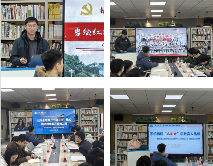 随后,两校辅导员代表分别就学生党建工作、实践育人特色品牌创建、学生思政工作体系、学生工作特色活动等内容进行专题汇报。华中科技大学计算机科学与技术学院辅导员程志强以《勇绘红旗下的“IT”人新蓝图》为题,重点介绍学院“三原色”特色学生党建范式;资源与环境工程学院辅导员岳晟达以《用“竞赛思维”创品牌 以“场域实践”塑脊梁》为题,详细介绍学院“黄鹤矩阵”实践育人模式的探索与实践;法学与人文社会学院辅导员林梓弦以《以学生思政“三律三径”模式推进时代新人铸魂工程》为题,汇报学院在多年实践中探索出的推进时代新人铸魂工程的具体路径与方案;安全科学与应急管理学院辅导员王红红以《系统构建“大安全”思政育人品牌》为题,介绍学院打造“安全文化节”特色工作品牌的创建历程与实践经验。
