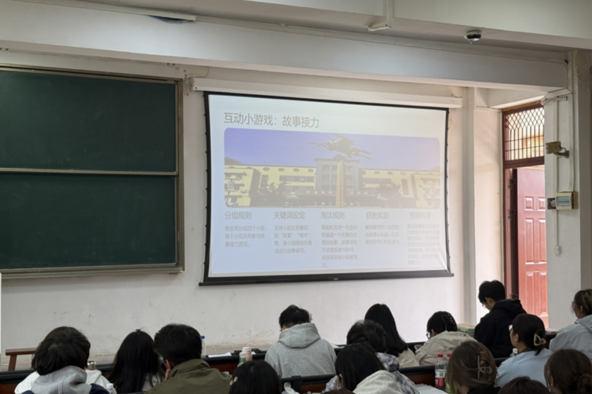 在15分钟的“故事接力”小游戏中,全班分为4个小组。主班长给出“探索”“恪守”等与理工精神相关的关键词,各组轮流用一句话续写故事。在轻松愉快的游戏环节,同学们进一步深化对关键词的理解,也通过协作互动打破陌生感,让班级氛围更显活跃。