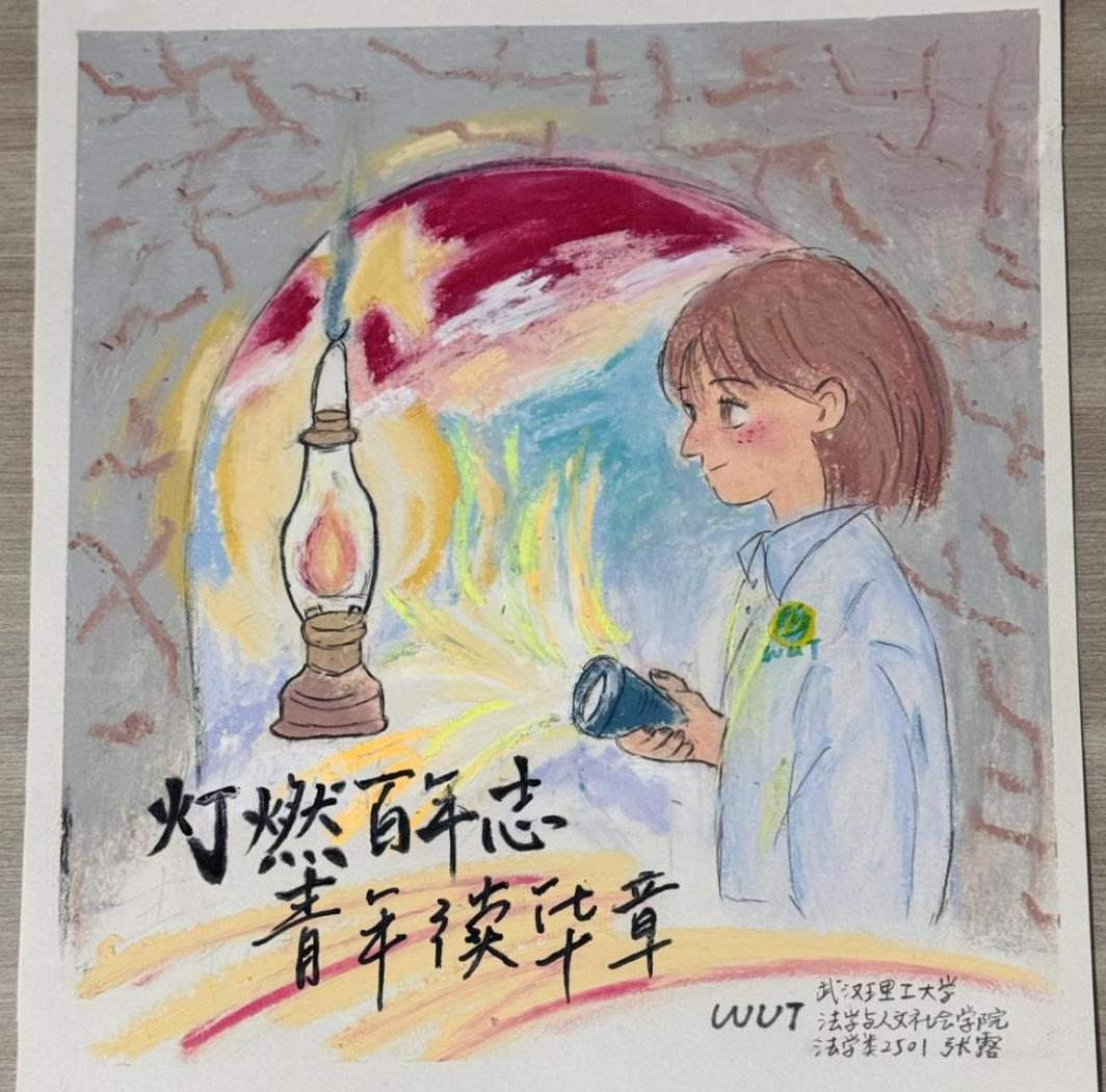 在红色教育方面,团支部张露同学以家族红色记忆为灵感,开展相关红色主题创作活动。创作中,不仅追溯革命岁月里的平凡英雄事迹,更联结新时代青年使命,抒发向党组织靠拢、传承红色基因的决心。在油画棒绘画与文字创作中,既让屋檐下的星火故事得以留存,更让红色精神在笔墨流转中代代相传,彰显了新时代青年勇担时代责任的青春风貌。