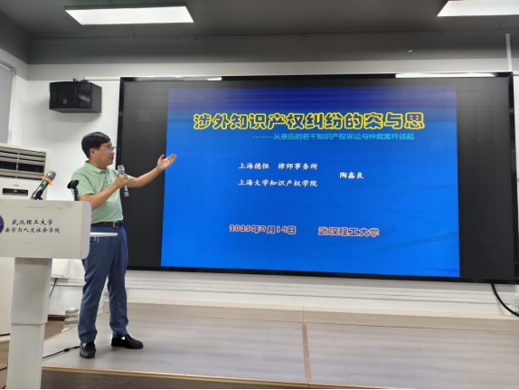 9月14日,上海大学知识产权学院名誉院长陶鑫良教授为我院师生作主题为“涉外知识产权纠纷的案与思”的讲座。法学系黄莉萍教授、胡神松教授、孟奇勋副教授、薛志华副教授、高珺特设副教授、刘小威等老师、硕士研究生、知识产权律师、企业知识产权负责人等100余人参加了学习交流,讲座由华中师范大学法学院刘华教授主持。