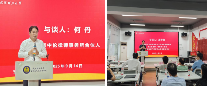在与谈环节,中伦律师事务所合伙人何丹律师分享了知识产权诉讼的实务经验和发展趋势;学院专硕中心主任孟奇勋副教授还结合我校知识产权人才培养的行业特色,针对高校知识产权复合应用型人才培养模式变革进行了深入分享。