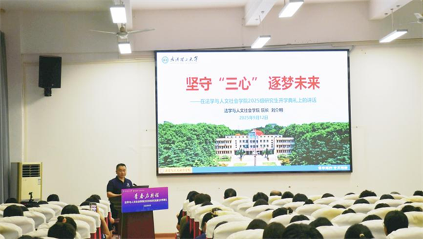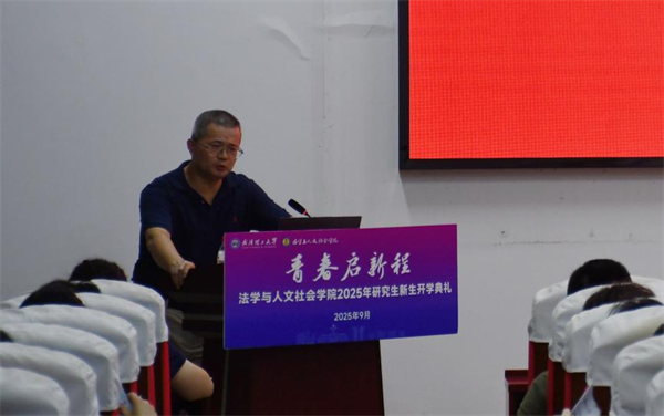 学院院长刘介明以“坚守‘三心’逐梦未来”为题,为同学们上了一堂生动的思政课。他指出,今天的中国正处于百年未有之大变局,技术革新浪潮奔涌,社会思潮多元激荡,面对时代之问、世界之问、成长之问,在“变与不变”“行与不行”“得与不得”之间,同学们要坚定地以“初心”“信心”“恒心”作答。他谈到,研究生阶段是学术生涯的“筑基期”,在技术迭代加速的今天,有人焦虑于“知识过时”,有人迷失于“流量至上”,但人文社科研究的价值,恰恰在于对人性、社会、文明的永恒追问。同学们要锤炼真才实学,让学问的根须深扎中国大地,敢于用理论回应“中国式现代化为什么行”,善于在实践中证明“我能为这份‘行’贡献什么”,努力成长为兼具人文精神、科学素养、家国情怀与全球视野的卓越人才。