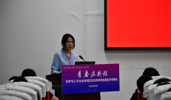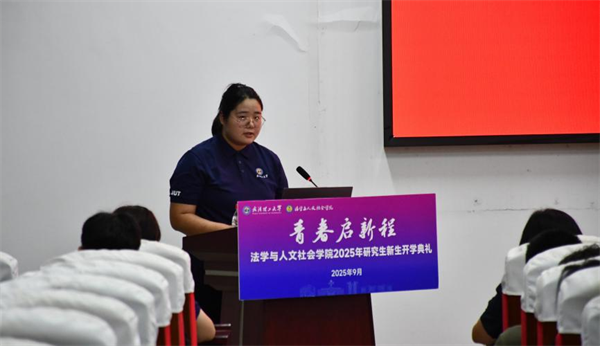 学院2025级社会工作专业研究生潘月莹同学作为新生代表发言,号召同学们明确目标、坚定方向,立德修身、端正心态,夯实基础、提升素养。并肩协作、昂扬奋进,始终保持对世界的热爱与好奇,在追求进步的路上不断突破自我。