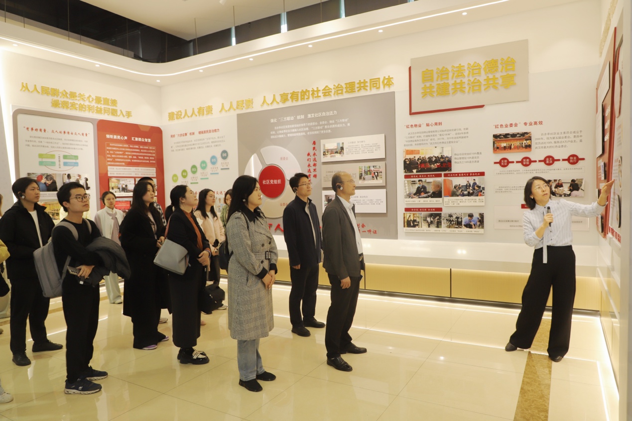 在百步亭社区志愿服务中心熊艳丽主任的讲解引导下,与会人员参观了社区党群中心展厅,深入了解社区在党建引领、基层治理与服务群众方面的创新做法与显著成效。
