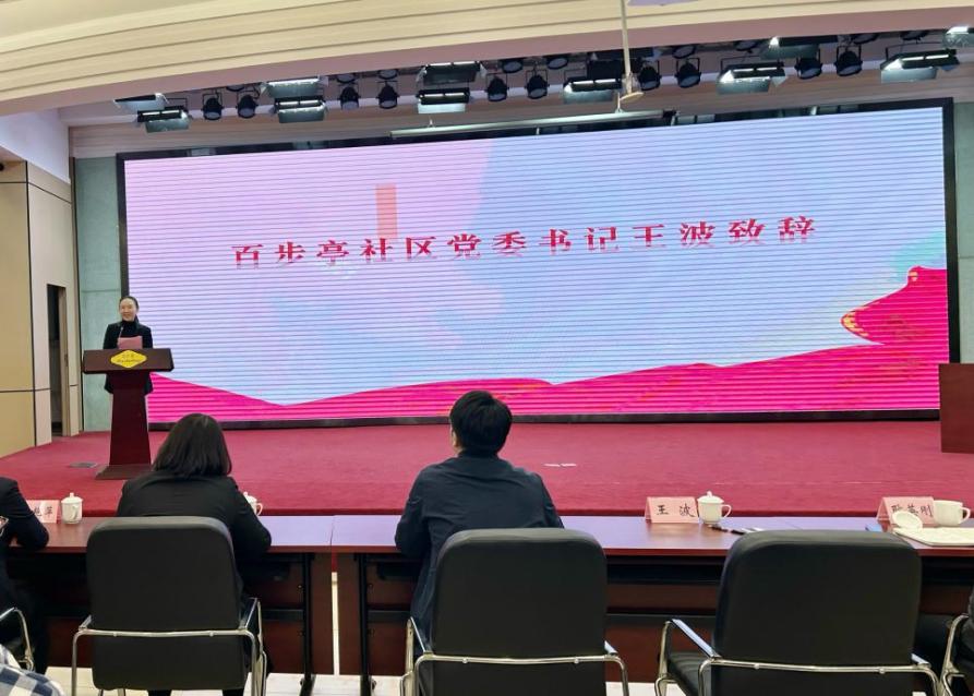 签约授牌仪式中,百步亭社区党委书记王波首先致辞。她以校友身份表达了对母校的深厚情谊,并对双方合作寄予厚望。她指出,此次共建实习实践基地是“校社融合”的升级实践,期待将百步亭打造为学生的“第二课堂”,并热切盼望母校的智力资源和专业力量注入社区,共同探索党建引领、专业支撑、社会协同的社区治理新路径,为超大城市治理现代化贡献更多“百步亭经验”与“理工智慧”。