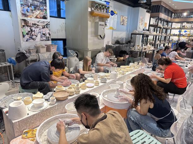 图13—武汉理工大学校史馆参观 图14—武汉理工大学梦广场体验陶艺制作