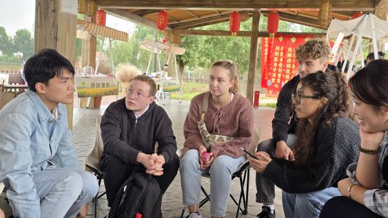 国际教育学院与法学与人文社会学院联合组织了各种文化交流活动。文化交流活动有系列常规参访,德国师生参观了武汉理工大学校史馆、创意梦工厂、黄鹤楼公园、湖北省博物馆,体验茶艺、陶艺等中国传统文化。刘卫华老师带领中国学生设计了社交聚会活动,在木兰湖云雾生态观光园举办,中德学生一起拔河、射箭、抛球、制作香囊、品尝有机农产品、参观武汉供销集团在农文旅融合发展中的乡村振兴实践,中国学生设计了反映中德文化的有奖竞答活动,刘卫华老师为大家简要介绍了中国共产党的农村工作在中国革命及现代化建设中的重要作用。在这些文化活动中,中德学生加深了相互了解,建立了友谊。