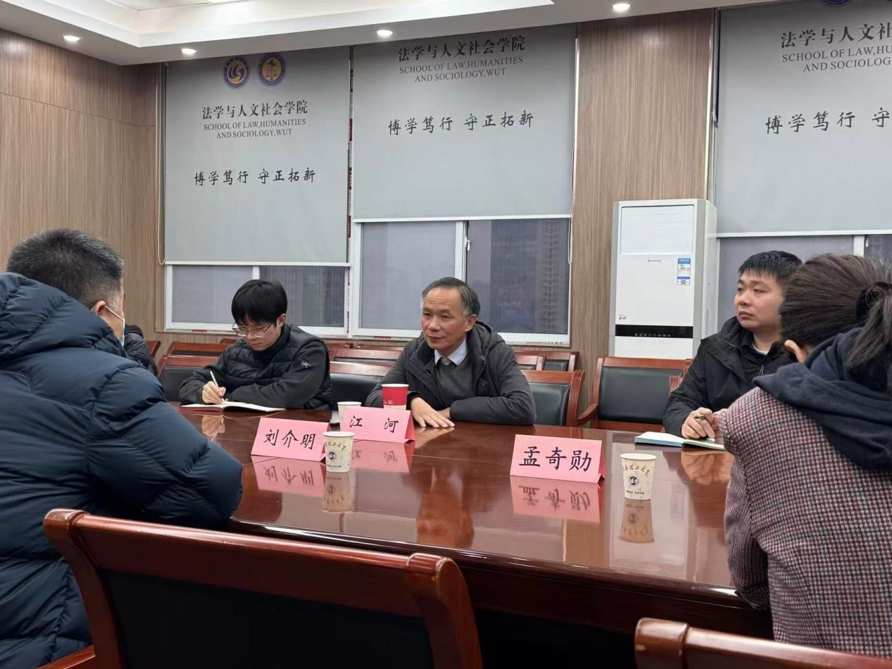 围绕学院重点发展的法学等六大学科,刘介明院长介绍了学院依托学校行业背景打造的特色布局,包括汽车行业法律、水路交通法律及知识产权等领域。江河教授对此表示赞同,并提出了针对性建议:其一,汽车法律可聚焦无人驾驶民事责任、数据隐私与安全等前沿议题;其二,知识产权研究应顺应数字化、智能化趋势,加强与人工智能等技术的融合;其三,涉海法律研究可注重智库报告产出,深化与涉海部门的合作,拓宽成果转化渠道。