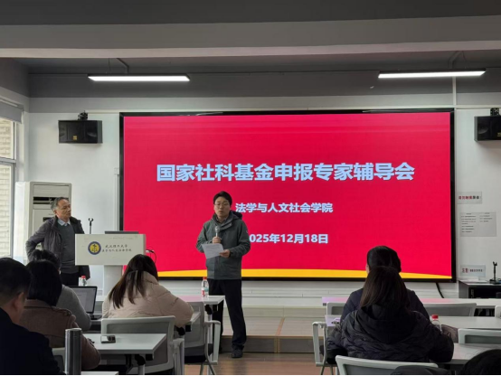 为提高项目申报质量和立项率,加强国社科申报针对性和有效性,12月18日,中南财经政法大学国际法学院江河教授应邀来我院作专题分享。法社学院副院长卜清平主持,全院教师参加。