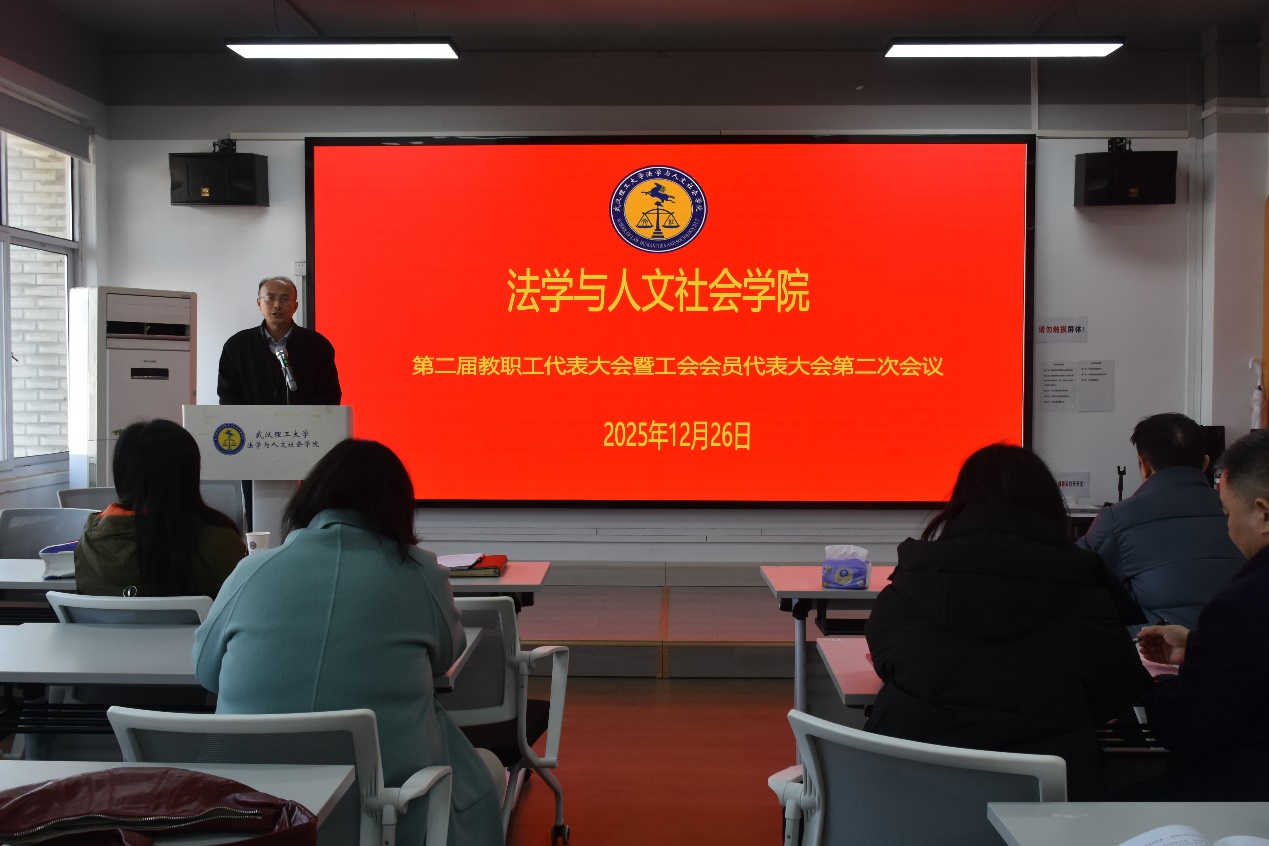 12月26日,学院第二届教职工代表大会暨工会会员代表大会第二次会议在弘毅楼附913-915报告厅召开。学校党委副书记、纪委书记李金发出席会议,学院全体领导班子成员、50余名教职工代表参与会议。会议全面总结了学院2025年各项工作,审议通过了多项重要文件,就学院“十五五”发展规划展开深入研讨,在明确方向、凝聚共识的基础上,为学院高质量发展注入新动力。