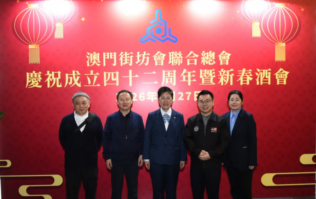 27日下午,余艳萍副教授受邀参加澳门街坊会联合总会成立四十二周年暨新春酒会。澳门特别行政区行政长官岑浩辉、全国政协副主席何厚铧、中联办主任郑新聪、立法会主席张永春、社会文化司司长柯岚、中联办副主任张应杰、外交公署副特派员程雷、中国人民解放军驻澳门部队参谋长邵春贵、中央社会工作部五局副局长张健、民政部儿童福利司副司长陈鲁南以及社会各界人士到场祝贺。