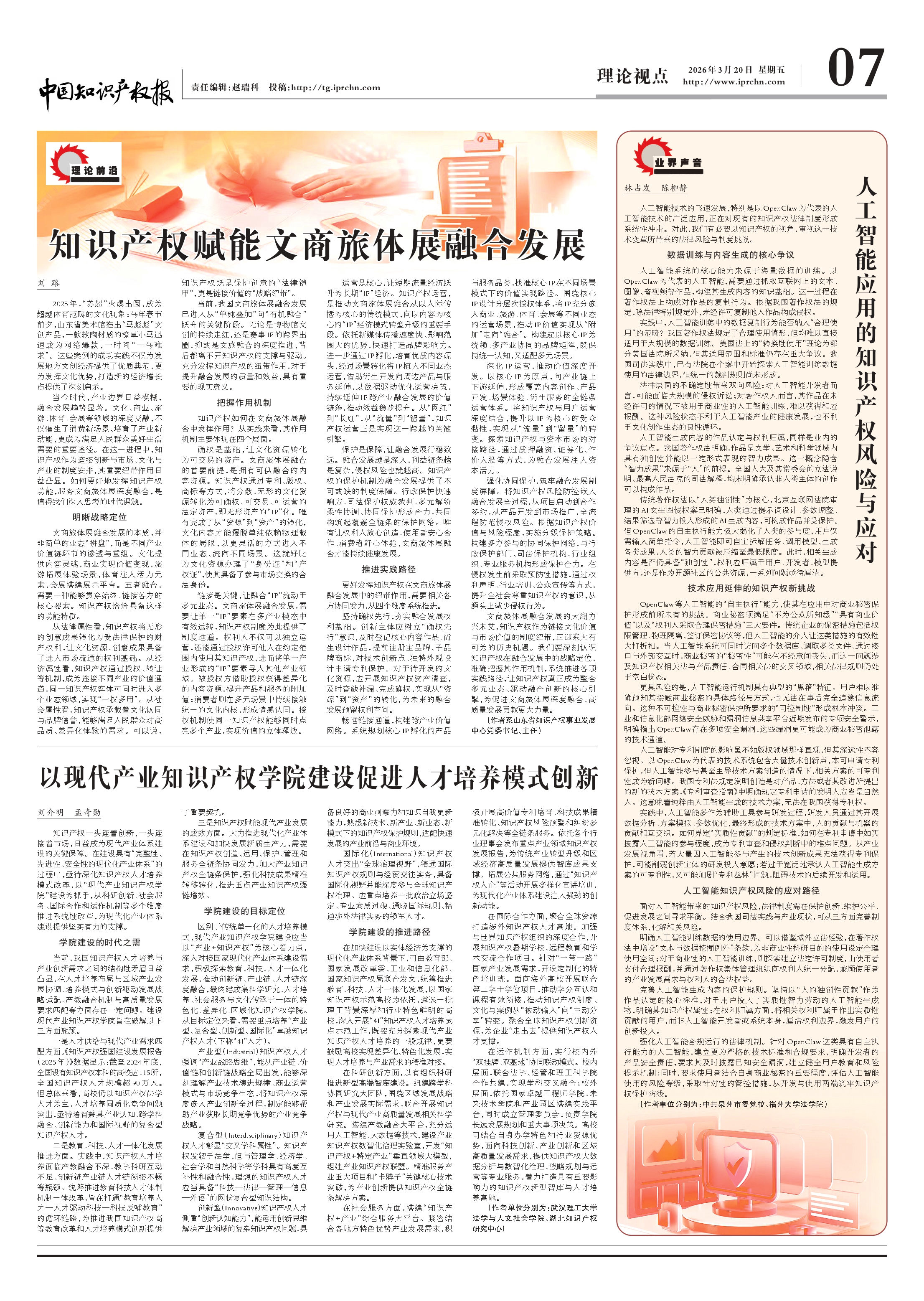 【媒体法社】中国知识产权报:以现代产业知识产权学院建设促进人才培养模式创新