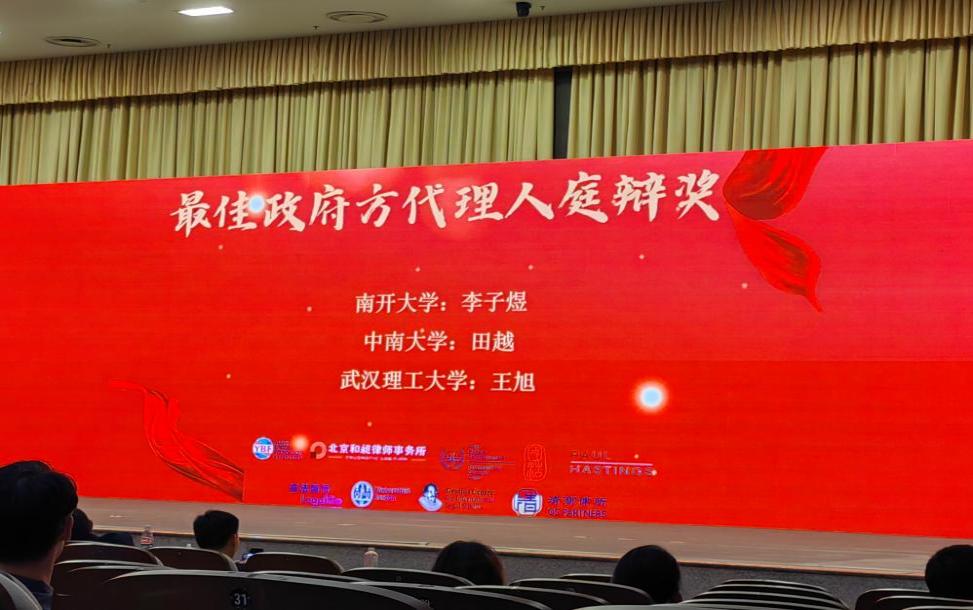 本次赛制主要分为书状撰写与庭辩两个环节。在文书准备阶段,面对复杂的赛题——涉及管辖权争议、元首豁免、不规范移交等复杂问题,团队深入研读国际刑法经典案例、学术文献,打磨法律文书的逻辑性与说服力。正赛两轮中,我校代表队先后对阵中南大学、中国政法大学、暨南大学、深圳大学等高校,队员们沉着冷静、灵活应对法官提问,展现出敏锐的临场反应能力与团队协作精神,最终以出色的综合表现荣获二等奖(第13名)、最佳政府方代理人庭辩奖。