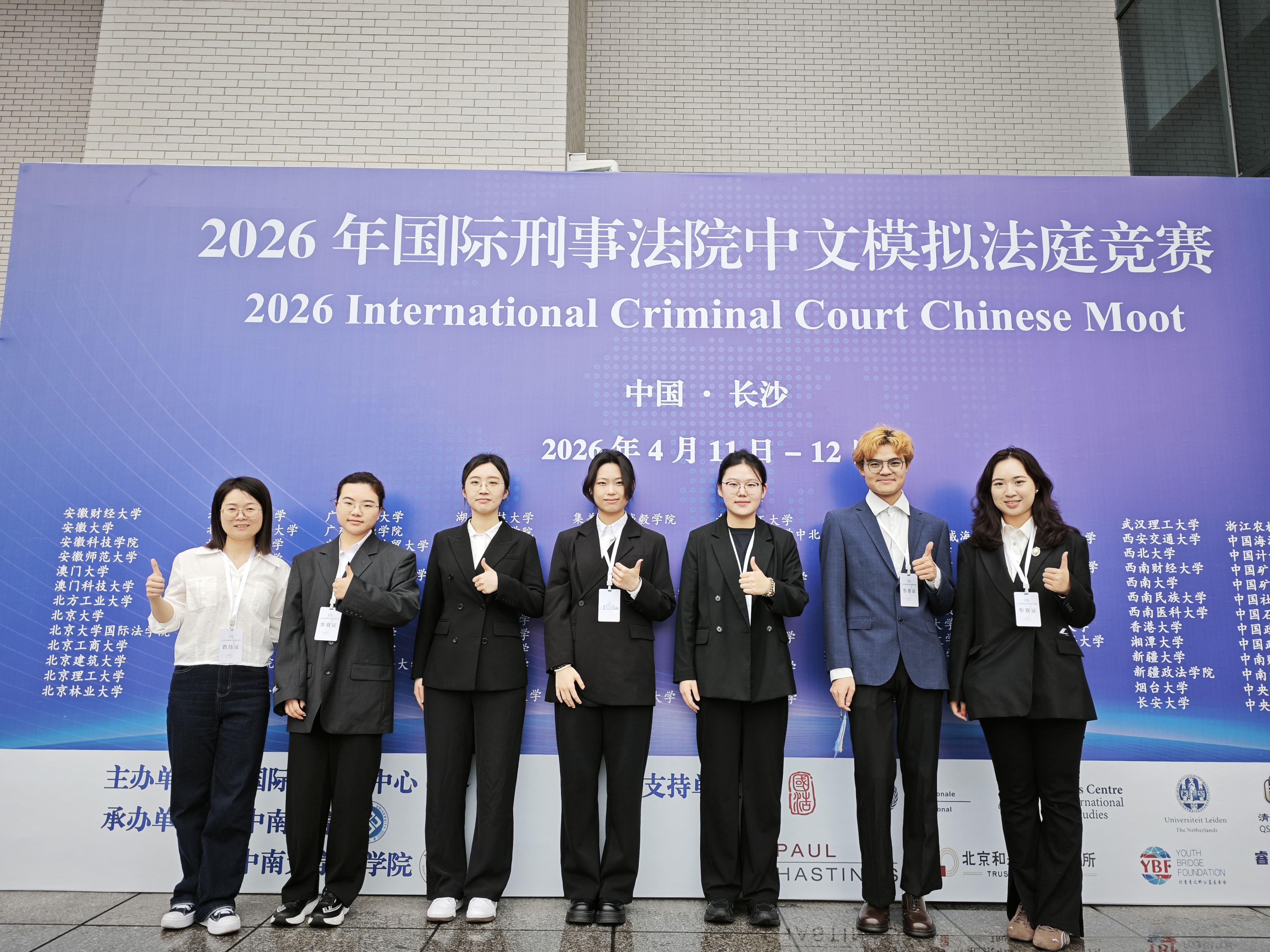 2026年4月11日至12日,国际刑事法院模拟法庭竞赛中文赛在中南大学举办。我校代表队从来自全国130余所高校代表队中脱颖而出,凭借出色的书状比赛表现进入庭辩阶段,最终斩获国际刑事法院模拟法庭竞赛(中文)全国二等奖、法学2404班王旭荣膺最佳政府方代理人庭辩奖,这是学院代表队继2025年首度晋级正赛后创造的又一历史性记录,不仅彰显了我院法学教育的显著成效,也为学校在国际法学竞赛领域赢得了重要声誉。